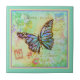 Teal and purple butterfly ceramic tile