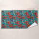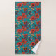 Teal and Red Floral Pattern Bath Towel