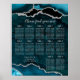 Welcome guests in style with this teal blue and silver agate marble wedding seating chart, designed to make a striking statement at your reception. Rich jewel-toned blues, organic stone-inspired patterns, and luminous silver accents create a refined and dramatic display ideal for fall or winter weddings. The deep ocean palette paired with metallic silver detailing complements elegant, modern, and glamorous celebrations while enhancing your décor. This seating chart is formatted for 12 tables and can be fully customized to accommodate additional tables, guest counts, and layout preferences, ensuring a seamless fit for your wedding day.
