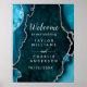 This elegant and glamorous wedding welcome sign features a teal blue agate marble background with faux silver glitter accents. The text combines handwritten script and modern sans serif fonts for a classy and sophisticated look. This will be perfect for autumn fall and winter weddings.