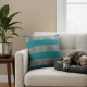 Teal and silver decorative throw pillow with stripes. Elegant striped pillow for teal and silver living room or bedroom.