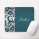 This elegant looking teal green and silver damask mousepad has a spot for your name, monogram, or other text.