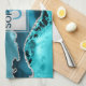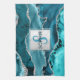 Teal and Silver Faux Glitter Marble Agate Monogram Kitchen Towel