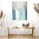Teal and Silver Glitter Abstract Art Acrylic Photo Tile