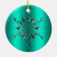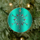 Teal and Silver Star Christmas Ceramic Ornament