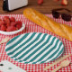 Teal and white candy stripes paper plates