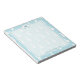 A light teal and white pattern of sitting silhouette cats is the background for this note pad. The center portion has a semi-transparent overlay which allows the pattern to show through and also allows easy reading of your written message. At the top is your monogram in matching teal on a white oval, and there is a text field at the bottom for your website or telephone number. *Thanks to ThingsByLary for the pattern in this design.