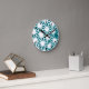Teal and white geometric pattern round clock