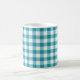 This coffee mug features teal (aqua blue) and white squares in an old fashioned gingham checked pattern. Personalize this mug with your name or other custom text or enjoy it as is.