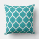 Teal and White Moroccan Quatrefoil Pattern Throw Pillow