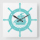 Teal And White Nautical Boat Wheel Square Wall Clock