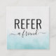 Modern referral cards featuring a soft teal watercolor design. The cards can be personalized with your business information on the back.