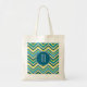 Teal and Yellow Colorful Chevron Pattern Monogram Tote Bag