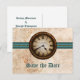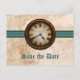Teal Antique Clock Save the Date Postcard