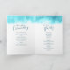 Double-sided abstract modern art teal aqua on a white background wedding programs. Edit this wedding programs with your own names, dates, ceremony wording, wedding party attendants and thanks . Simple yet elegant programme simply replace sample text with your wedding information details. Modern wedding ceremony programs. Original abstract wash painting and design by Sarah Trett. www.sarahtrett.com for www.mylittleedenweddings.com