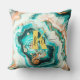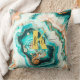 Teal Aqua Agate Golden Custom Modern Monogram Throw Pillow