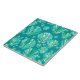 Ceramic tile in a pattern of teal, turquoise, white and aqua semi-abstract sea shells on a turquoise background