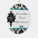 Teal Aqua Damask Lace Personalized Name Ornament