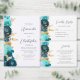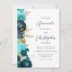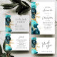 Teal Aqua Gold Floral QR Code Wedding Invitation