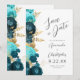 Teal Aqua Gold Floral Script Save the Date Announcement