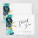 Teal Aqua Gold Floral Wedding Flat Thank You Card