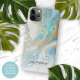 Make your iPhone stand out with this elegant case, featuring a teal, aqua, turquoise, blue, white, and gold marble pattern. It has a glossy finish that highlights the beauty of the marble design. And it has room to customize or personalize with your name, monogram, or initials. This case is perfect for anyone who loves the sophistication and uniqueness of marble, a type of rock that forms from layers of microscopic quartz crystals, creating intricate patterns and bands. Order yours today and enjoy the compliments! This design is available in Apple iPhone 6, 7, 8 Plus, 10 or X, XR, XS, 11, 12, 13 Mini, 14, 15 Plus, and Pro Max cellphone cases. Show off your style, look fashionable trendy, and feel stylish with a unique design on a mobile device accessory of your choice.