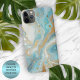Teal Aqua Turquoise Blue White Gold Marble Pattern iPhone Case