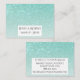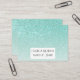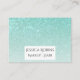 This chic and glamorous business card features a teal or aquamarine color glitter gradient background. The glitter appears darker and more condensed near the top and gradually fades towards the bottom.