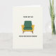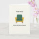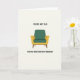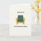 This card shows a single stylish armchair as the main focus, drawn with smooth, flat shapes that nod to mid‑20th‑century décor. The chair has gently curved armrests and a cushy seat that looks inviting, like it’s waiting for someone you care about to sit close ❤️. Deep teal covers the main upholstery, while a mustard-yellow outline frames the chair’s shape and adds a cozy, friendly contrast. Warm, dark-brown tapered legs lift it slightly, giving the scene a light, airy feel against a creamy off‑white background. Across the top, bold sans‑serif text in dark lettering reads “YOU’RE NOT OLD,” centered above the chair. Along the bottom, matching text reads “YOU’RE MID‑CENTURY MODERN,” centered below, landing like a teasing compliment you’d share with a friend 🌼. The background stays plain and uncluttered, making the teal-and-mustard chair and the two lines of text stand out crisply on the page.