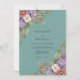 This design features a moody teal background adorned with rich watercolor botanical elements. Clusters of rust-toned roses, purple lilacs, and cream-colored blossoms create an atmospheric and romantic feel. Soft eucalyptus leaves and earthy foliage finish the look, making it ideal for a sophisticated seasonal event.