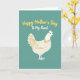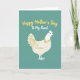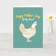 This card shows a creamy white bird, like a friendly hen, filling the lower half of the front with smooth curved outlines and a soft, welcoming posture. Golden-yellow touches trace feather details along the body and fanned tail, and the small round eye and ruffled comb give it an affectionate, attentive look that feels like a gentle nod of friendship ❤️. The background is a muted teal field that keeps the scene calm and cozy, letting the light tones stand out. Near the top, the words “Happy Mother’s Day” sit in golden-yellow lettering, centered and easy to spot. Just below that, “To My Aunt” appears in smaller white lettering, also centered, adding a close, family-focused touch 🌼. The spacing leaves plenty of open teal around the text, so the message feels airy and uncluttered. The bird’s bright yellow eye is a single dot, and the comb is a scalloped golden shape above its head.