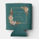 Teal Autumn Leaves Can Cooler. Celebrate your love with a cozy, seasonal flair using this autumn leaves can cooler. Adorned with warm watercolor foliage in terracotta, burnt orange, and copper shades, complemented by soft beige florals, this design captures the essence of a fall celebration. Whether handed out at cocktail hour or tucked into welcome bags, it’s a thoughtful and practical favor that brings your theme full circle. Make it personal and let your guests sip in style.