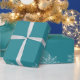 Teal Background with White Snowflakes Wrapping Paper. Matching gift tags.