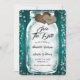 Rustic teal wedding save the date card featuring a mason jar with string lights and burlap hearts against a barn wood background. Easily personalize this cute rustic teal wedding save the date online. Matching items available to complement this teal wedding save the date.