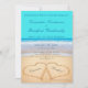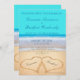 Teal Beach Wedding 2 Hearts Sand wedding Invitation