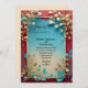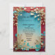 Teal beige leaves red gold frame wedding invitation