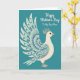 Designed with a stylized bird standing gracefully on a deep teal background, the artwork feels calm and affectionate, like a gentle nod between close family members ❤️. The bird is a soft creamy color, covered in fine, lace-like decorative patterns that give it a rich, textured look. Its long tail feathers sweep across the left side in layered sections of muted blue through bright aquamarine, dotted with small eye-like shapes and tiny golden-yellow accents. A peachy-pink crest sits on its head, matching the warm tones of its beak and slender legs, adding a tender warmth to the cool palette. In the upper right, the message “Happy Mother’s Day To My Step-Mom” appears in flowing lettering, set in a light tone that stands out clearly against the teal. The spacing leaves plenty of open background around the words, so the text feels airy and calm, like a quiet, caring note 🌼. Curving ornamental lines repeat across the bird’s body and feathers, and the tail arcs leftward with teal, aqua, and gold details.