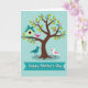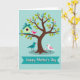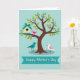 This design shows a stylized tree with a rich brown trunk and a canopy of softly shaded leaves in fresh green, teal, and warm gold. Tucked among the branches sits a pastel mint birdhouse with a teal bow and a bright pink entrance that draws the eye. A bright pink bird perches on an upper branch, while a teal bird stands near the base as if keeping watch over the scene. On the ground, a larger white bird with light pink on its wings leans close to a tiny pink fledgling, their gentle posture suggesting a caring bond ❤️. The background is a light robin’s egg blue, giving everything an open, airy setting with plenty of breathing room. Along the bottom, a wide teal banner holds the message in white lettering, centered and easy to read, with a small 🌼 accent nearby. Small leaf clusters in mixed greens and golds dot the canopy, and the birdhouse opening remains a vivid pink circle against the mint body.
