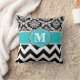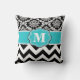 Show off your personal style in a fun way with this teal and black damask and chevron print monogram pillow.