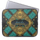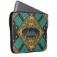 Batik, Tribal, and geometric fusion in teal, gold and black pattern laptop case with customizable name / monogram space
