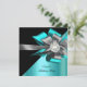 Teal Black Grey Silver Bow Pearl Birthday Party Invitation