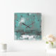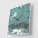 Teal Black White Gray abstract Square Wall Clock