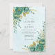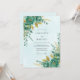 Evoke a sense of enchantment with this ethereal design featuring lush teal blooms and golden foliage. Delicate watercolor washes create a dreamy, romantic atmosphere perfect for a sophisticated celebration.