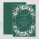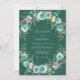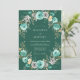 A cascade of lush teal blossoms, accented with soft grey and gold foliage, creates an elegant and romantic atmosphere. This design evokes a sense of natural beauty and refined charm. The rich, deep green backdrop enhances the vibrant floral arrangement, perfect for a sophisticated celebration.