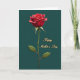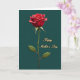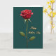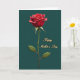 This design shows a single deep-red flower centered on a dark teal background, standing tall on a slim green stem with a few gently veined leaves. The petals look soft and velvety, shaded so they curl outward like they’re opening for someone special, adding a quiet romantic touch ❤️. A mild, diffused light falls across the bloom, giving it depth without harsh shadows and keeping the scene calm and intimate. A thin golden-white outline traces around the flower, separating it from the background with a subtle glow. On the right side, the words “Happy Mother’s Day” appear in flowing gold lettering, arranged in two lines with “Happy” above “Mother’s Day.” The text has a slightly raised, metallic shine that matches the warm edge light around the flower, like a gentle shared moment captured in color 🌼. The teal field stays smooth and dark behind everything, making the red petals and gold message stand out clearly.
