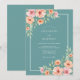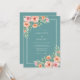 Delicate watercolor blossoms in shades of peach and pink dance across a tranquil teal backdrop. Lush greenery entwines with soft floral clusters, creating an artistic and romantic aesthetic perfect for a memorable celebration.