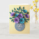 This greeting card features a bouquet of layered paper flowers spreading across the upper half, with soft lavender petals and cool teal accents that feel like a gentle hug ❤️. The blossoms are folded into detailed shapes, and their curved edges create the kind of closeness you see in friends leaning in for a photo. Slim, deep teal leaves weave between the flowers, guiding your eye in a relaxed, flowing path over a pale yellow background. Subtle lighting adds small shadows under each petal, giving the arrangement depth and a cozy, romantic softness. Near the bottom center sits a muted gray circle that works like a simple vase, grounding the bouquet as it rises upward. Across that gray circle, a short message appears in white lettering, centered and easy to spot, like a quiet note meant for someone special 🌼. The flowers cluster most densely at the top, with a few stems and leaves tapering down toward the round base. The overall scene stays airy and balanced, with lavender blooms and teal leaves set against the pale yellow field and the gray circle below.