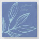 This coaster features an illustrated, abstract close-up line drawing of a marine plant. The colors are shades of blue. There is a custom text area for your family name or home name. Perfect for beachy, coastal or nautical theme decor.