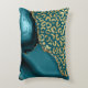 An elegant pattern of gold and leopard spots on a teal blue background combines with teal agate trimmed with faux gold glitter in this luxurious accent pillow.