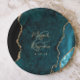 Teal Blue Agate Gold Script Wedding Paper Plates